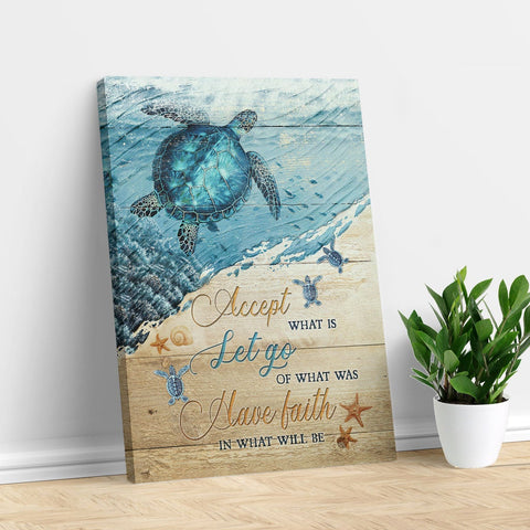 Sea Turtle, Accept what is, let go of what was, have faith in what will be - Jesus Portrait Canvas Print, Wall Art