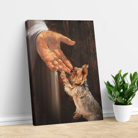 Yorkshire Terrier In the hand of God - Jesus Portrait Canvas Print, Wall Art