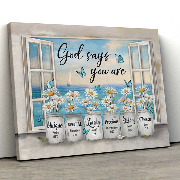 God says you are - Flower window view painting - Jesus landscape canvas print, Wall Art