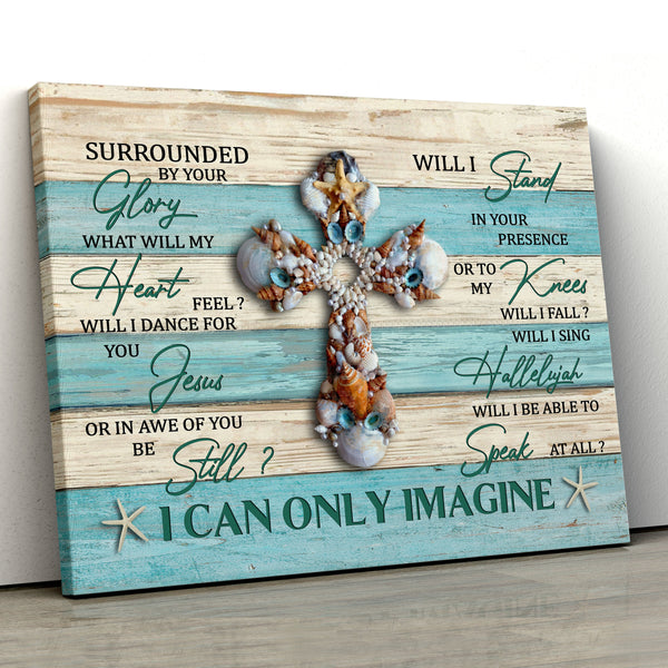 Seashell cross painting - I can only imagine - Jesus Landscape Canvas Print, Wall Art